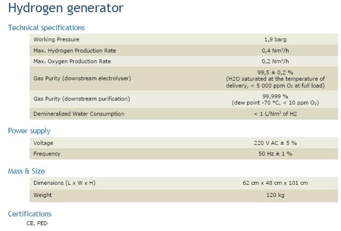Mini-portable water electrolysis hydrogen generator is an European technology based water electrolysis hydrogen and oxygen gas generating unit which can simply electrolyze the H2 and O2 from the steamed or purified water. The unit is extremely compact, one button start smart gas generator which requirement almost zero maintenance and portable for operation at different locations and applications.