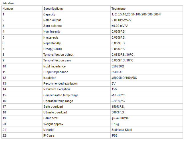 Mini S Beam Compression And Tension Load Cells 2.5N 5N 10N 20N 30N 50N 100N 200N 500N (B313). 17-4PH stainless steel with 2.5N to 500N capacity.