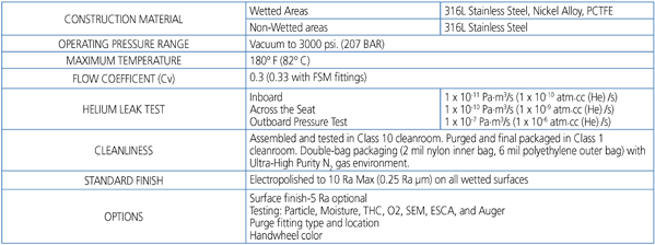 - Ultra-High Purity Stainless Steel/PCTFE Gas Construction