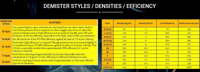 Oil or water mist in exhaust streams is typically a potential health and environmental hazard. When the mist or exhaust gas passes through the knitted wire mesh, the mist moves freely through the mesh. However, as the liquid droplets come in contact with the knitted mesh they adhere onto the surface of the wires and build into larger droplets that drop out due to gravitational forces. This process of removing toxic gases, oil mist or sulphuric acid gas has a removal efficiency up to 99%. Knitted wire mesh pads have no moving parts, can be made of high grade stainless steel and require little maintenance, therefore they are the most economical solution for mist elimination.
