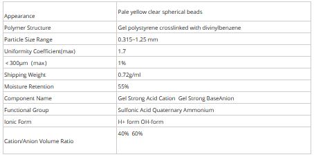 Mixed Bed Resin HL10M – Cation (H)/Anion(OH) Applications