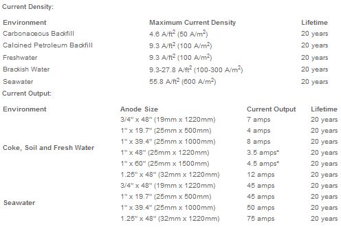 TELPRO tubular anodes are manufactured using titanium, which meets ASTM B338 Grade 1 or 2 standards. The mixed metal oxide coating applied to the titanium tube has been designed for use in all cathodic protection applications. TELPRO coating consists of IrO2/Ta2O5 and is suitable for use in soils, freshwater, brackish water and seawater. Based on accelerated life testing conducted by an independent laboratory, TELPRO coating has proven to be superior or equivalent to other mixed metal oxide coatings currently being used. A copy of the test report is available upon request. Strict quality control procedures are followed throughout the coating process to insure proper coating adhesion and loading. Production of a quality product is fundamental in every step of the mixed metal oxide anodes have an extremely low consumption rate. The titanium substrate remains constant throughout the design life of the anode.
