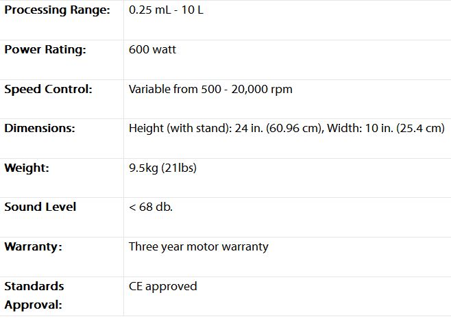 Since 1956 the Omni Mixer Homogenizer has been synonymous with laboratory homogenizers. The Omni Mixer Homogenizer is a powerful 600 watt homogenizer that is compatible with a wide range of generator probes, blade assemblies and sealed containers to offer the perfect mix of dependability, versatility and power. The Omni mixer is ideally suited for homogenizing, blending and creating emulsions. The Omni Mixer is compatible with stainless steel generator probes ranging in diameter from 7 mm to 35 mm and glass, plastic or stainless steel chambers from 13 mL to 1360 mL with sealed generator probes or blades.