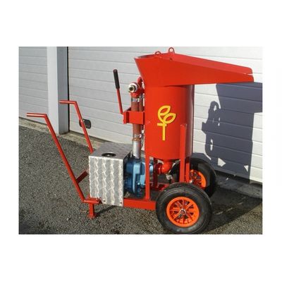 A very handy, hand-pulled and easy-to-operate mixer / injector on robust pneumatic wheels. Driven either by a fourstroke petrol engine with manual recoil starting system or a powerful hydraulic motor. Suitable for mixing and injecting cement grout or a cement/bentonite mixture for the filling of boreholes or CPT holes. The mixing of the cement with water takes place in the vortex of the mixing vessel as well as by the pump itself. By means of a Irex coupling the armoured injection hose (D = 25 mm) is connected to the unit. A manually operated lever allows the operator to adjust the flow of the grout while injecting. The unit is to be cleaned thoroughly using plain tap water after use. The mixing vessel and the pump are to be flushed by means of the valve and scour vent.