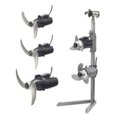 The mixers and flowmakers are fitted with propellers made of stainless steel or composite material with diameters between 180 mm and 2600 mm and rotation speeds between 22 min-1 and 1400 min-1.