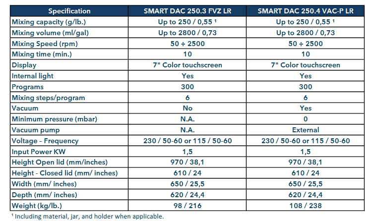Real-Time temperature monitoring and control with automatic cooling system. Independent variable counterrotation to obtain unmatched results More efficient mixing, better degassing, mix the impossible. Enhance and optimize the mixing process with all the features available for the SMART DAC.