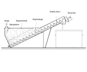 An effective classifier of the screw type which is manufactured in five standard sizes and is used for automatic removal of grit from grit traps or other sedimented particles with relative high sedimentation velocity.