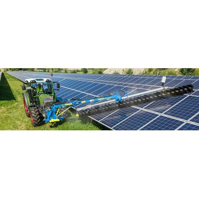 The innovative SunBrush Mobile Compact PV cleaning solution can be mounted on almost any vehicle. Thanks to its reduced width and height, this solar cleaning device is more compact, thereby significantly improving both manoeuvring and driver visibility of the modules. The joystick and touch-sensitive hydraulic control ensure a simple and precise operation. With the SunBrush Mobile Compact, there is no need for cumbersome manoeuvring, as photovoltaic cleaning is carried out by means of a brush roller that can be swivelled through 180°. It weighs approx. 500 kg with a brush length of 4.5 metres.