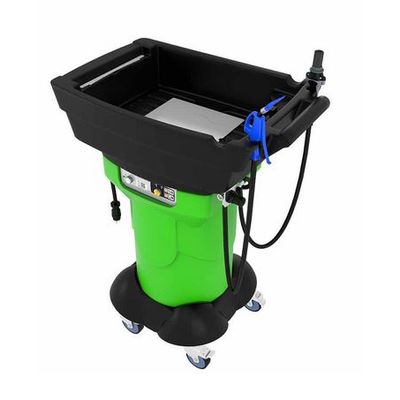 The parts washer works with the BLUELIQUID: Aqueous based solution composed of specific surfactants, non-toxic and non-flammable.