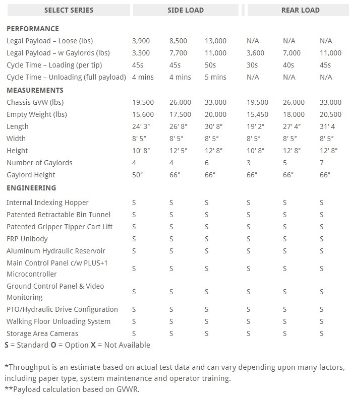 The Select Series can be pre-loaded with plastic bulk bins (plastic gaylords), which can be filled individually, allowing for paper sorting during the route. Bins can
