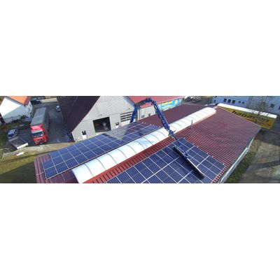The SunBrush Mobile Crane can also be used to clean solar installations that are very high or otherwise inaccessible (e.g. rooftop installations). The cleaning unit is mounted on the jib arm of a crane or a lifting platform, so that even high-altitude installations can be reached without difficulty.
