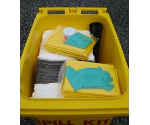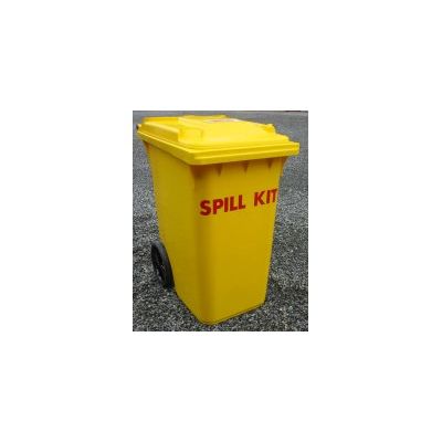 The perfect spill kit for indoor or outdoor locations such as repair facilities or warehouses. UV stabilized polyethylene container is weatherproof and yellow in colour. Large wheels allow this kit to be moved quickly to the site of a spill. Easily identified with red “Spill Kit” decal. Sorbent capacity of 350 litres. One size bigger than the KI-ESK240-L, this kit contains more product and has a higher sorbent capacity of 92 gallons / 350 litres.
