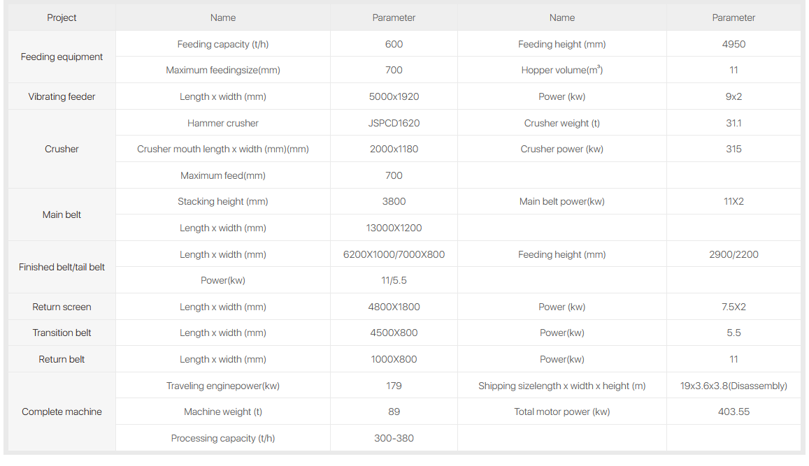 The equipment is equipped with a material return system, which can strictly control the particle size of the product, and the return belt (fixed) returns the material to the feeder and breaks it again;