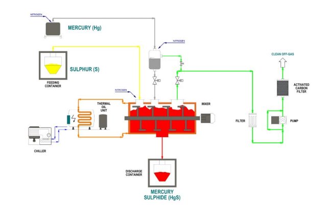 - Our mobile units transform toxic mercury to non-toxic and stable red mercury sulphide (HgS - cinnabar) ready for leachate-
