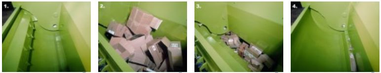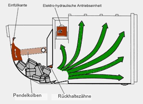 - Illustration of the pendulum blade at the end of the compactor stroke. The garbage was pushed under the break edge into the container.
