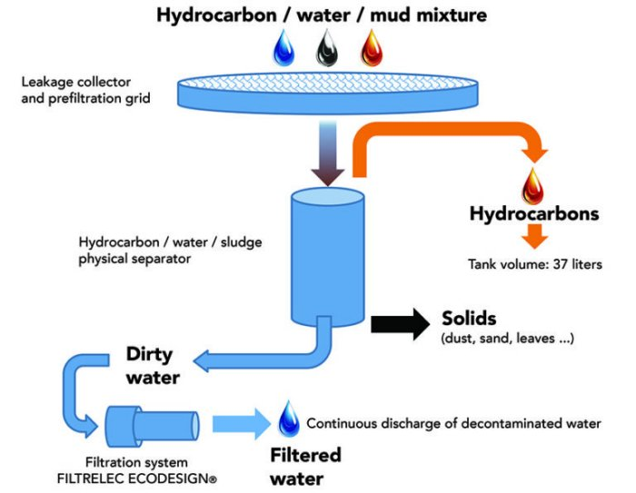 - Quality of the filtered water compliant with the requirements of the Water Act: hydrocarbon content < 5 ppm.