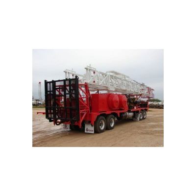Service Depth: 10,500 ft [3200.4 m] (2-1/2` tubing). Workover Depth: 8,500 ft [2590.8 m] (2-7/8` DP). Max. static hook load: 180,000 lbs (4 lines). Clear Height: mast 96` [29.3 m]. Rated Horsepower: engine 300 hp / 2,200 rpm Height: Tubing board to ground 55 ft` [16.8 m]. Rod board to ground 78`-6` [23.9 m] Carrier: 4 axle-two steer and two drive axles. Diameter: Wireline 1`. Road Traveling Dimensions: 56`-6` long x 9`-4` wide x 13`-8` high 17.22 m long x 2.8 m wide x 4.2 m high. Carrier Dimensions: [excluding mast] 38` long x 9`4` wide x 9`-8` high.