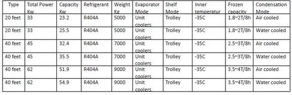 - Convenience: It is possible to move the equipment at any time, and put into service just after powering it up. After the products are produced, processed, fished or slaughtered, they can enter the freezing process in the shortest time, avoiding the products from loss of freshess and gloss during transportation.