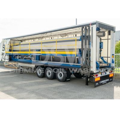 DIEMME SOIL WASHING manufactures complete mobile filtration systems on trailers, equipped with a cake discharge system, completely independent for autonomous use in the mechanical dewatering of sludge or in combination with the water treatment and sludge conditioning line on containers like structures.