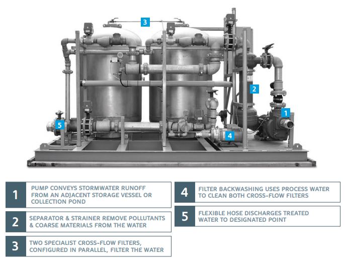Go-Filter is able to remove up to 95% of fine suspended solids and particles to just 0.5 microns in size; filtered water can be discharged directly to a receiving water body.