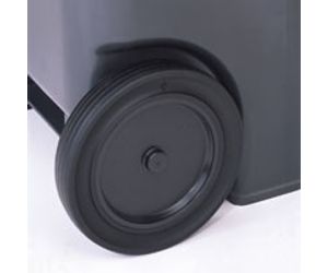 To facilitate handling of the commercial waste wheelie bins, especially on rough terrain or during snow, they can be fitted with 300 mm diameter wheels.