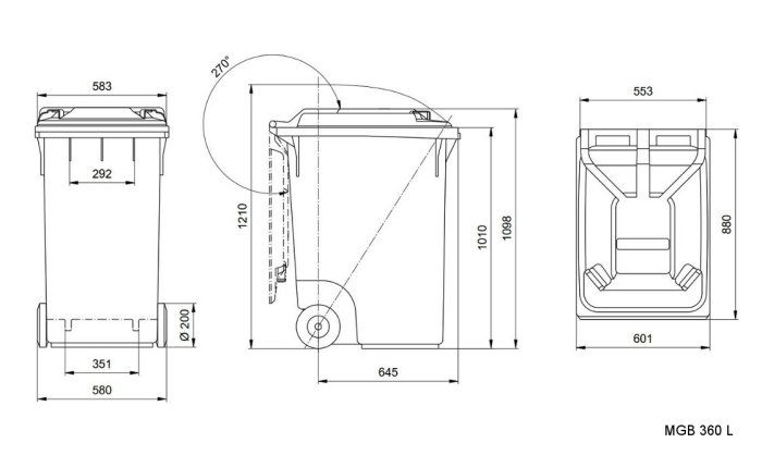 Wheelie bins Weber - Model MGB 360 litre -Mobile Waste Container