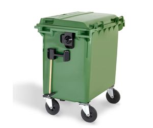 Optionally, the 660 litre LiL wheelie bin can be delivered with a central brake operated by a foot pedal on the right-hand side of the container. The lock can be opened by using a triangular key.