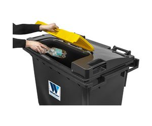 Weber waste bins 770 litre LiL are made of polyethylene (HDPE) in a compact injection molding process in accordance with EN 840-2 which makes them resistant to UV, frost, heat and chemicals. This wheelie bin has a lid with an easy-to-open insert lid (lid in lid, "LiL") making it particularly user-friendly.- All metal parts are corrosion-resistant thanks to galvanic zinc plating