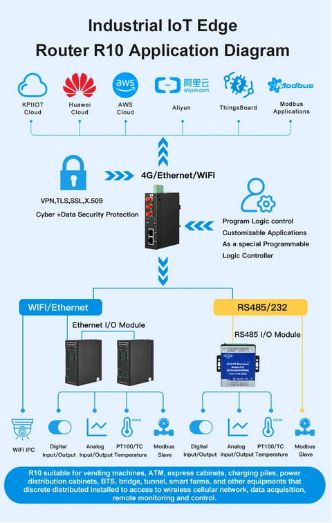 The Modbus to WiFi Converter is removed 4G Module from R10A, used to convert RS485/Ethernet to WiFi, converting Modbus to MQTT Protocols.The Other functions are the same as R10A.