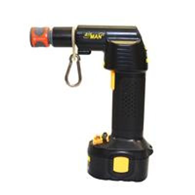 Pressure pump with manometer and large coupling connection (female) with carabine hook, inclusive charger.