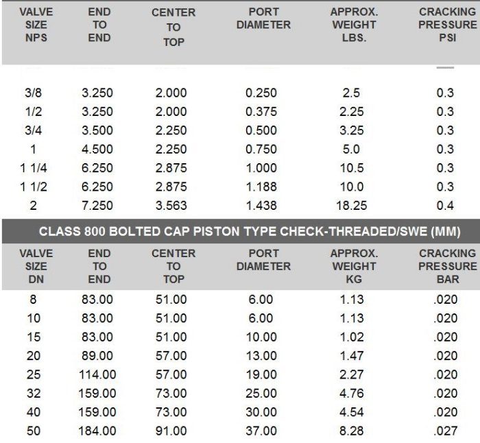 Valve size nps 1/4. End to end 3.250. Center to top 2.000. Port diameter 0.250. Approx weight lbs.2.5. Cracking pressure psi 0.3.