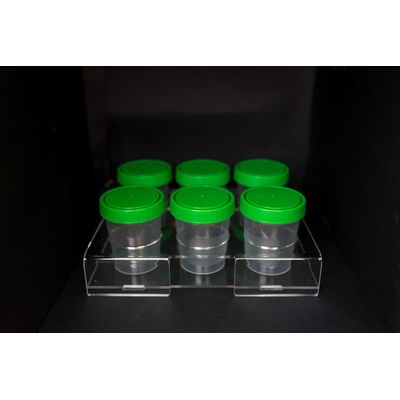 DIMENSIONS : 70 x 47 x 60 MM, The container is made of polypropylene, Color of container is transparent, and the lid is red or green, screw on lid and screw on container, 100 ml, graduated, It is use for safe transport of urine and others samples.
