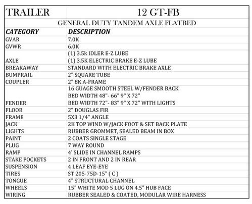 Model 12 GT-FB - 6K GVWR -Car Haulers