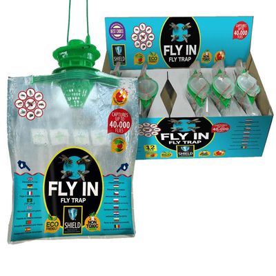 Professional Fly Traps in an Exclusive Display Box. Captures up to 40,000 Flies. Effective for Private Yards, Horse Ranches, Cowsheds, Agricultural Farms, Swimming Pools, Garbage Areas and other Sites Infested with Flies. Contains Powerful Bait – just add water. Simple to use with our Specially Designed Top Plug. Includes 12 Units Display Box – Ultimate for Stores.