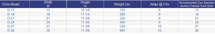Model 15 to 30 Inch -Drive Units for Core Diameter Outside-Track Bowls