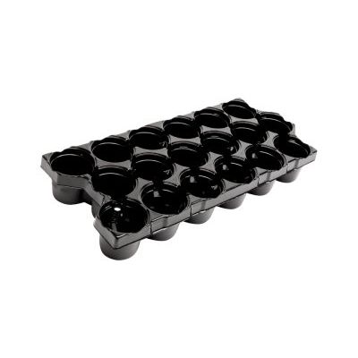 SHUTTLE 18 18 x 8.5 cm . Tray size 52 x 25 cm. Depth of tray 7,2 cm. Quantity per pallet 1792. Length x Width 3 x 6. No. of cells per m² 138. With bottom holes 2 x 12 mm.
