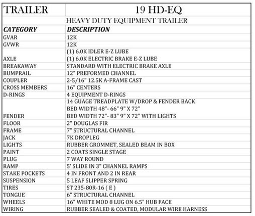 - Model 19 HD-EQ - 12K GVWR - Equipment ...