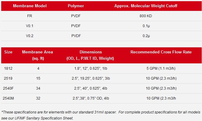 Synder Filtration`s 2` sanitary microfiltration elements are ideal where 800KD to .2ยต membrane pore sizes are required for pilot studies and other low volume operations. With large inventories of these elements stored strategically around the globe, common models are available with same-day shipping.