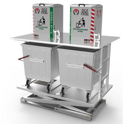 - With this system, municipalities take a piece of hydraulic jack pipe from the vehicles remote to raise 2x1100 lt. containers above ground. When litter collectros empty containers, they lower down the system again.