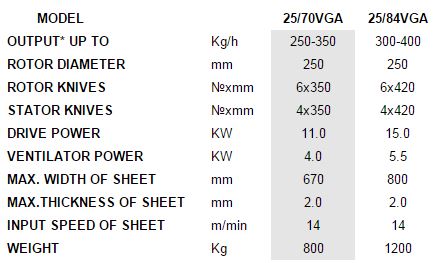 Model 25/70VGA and 25/84VGA -Plastic Granulators