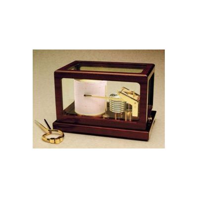 This beautiful German made Model 410-D Weems & Plath Deluxe Barograph uses eight diaphragm bellows to provide maximum sensitivity and precision. The hinged case provides easy access to the chart drum. The single AA battery operated quartz movement requires no winding and is more accurate than key-wound movements. The conventional ink nib and messy ink bottle are replaced by a felt tip pen which lasts 6 to 9 months. The barograph is furnished with a one-year supply of weekly charts, AA battery, one felt tip pen, and dampening fluid.
