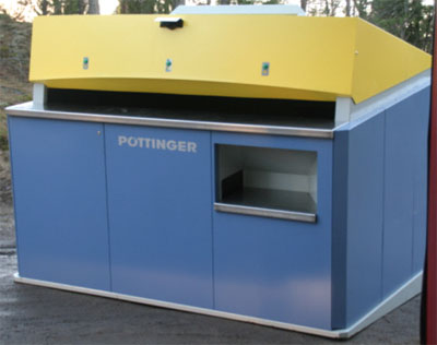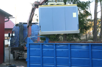 Emptying takes place simply and safely by means of a double door using a truck crane.