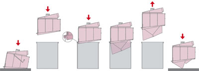 Closing takes place automatically by means of a special kinematic system when it is set down. Closing creates no labour input.