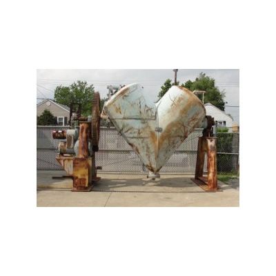 100 cubic foot Patterson Kelly, Twin Shell Vacuum Dryer, jacket is rated for 30 PSI at 250º F, drying chamber is rated for 150 PSI & full vacuum, drying chamber is designed to turn between .96 to 7.66 RPM using a 10 HP Reeves drive, motor is tagged for hazardous location, 56` diameter x 96` outer shell of each chamber, chamber has 18` access panel, 12` bottom discharge, 304 stainless steel contact surfaces, carbon steel jacket, 75 pounds per cubic foot maximum density, 19` 9` long x 83` wide x 10` 1` tall, requires 460 vac 3 phase electrical supply, drawings on file.