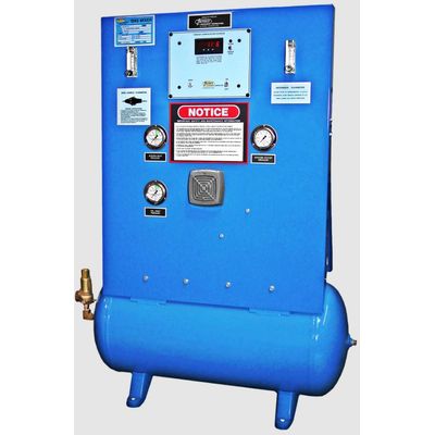 Flow rate capacity of 2,000 scfh for a variety of applications. Continuous gas analysis of the gas mixture with audio/visual alarms standard. Surge tank design will produce a highly accurate mixture from zero flow to full flow, no minimum flow rate requirement to maintain accuracy.