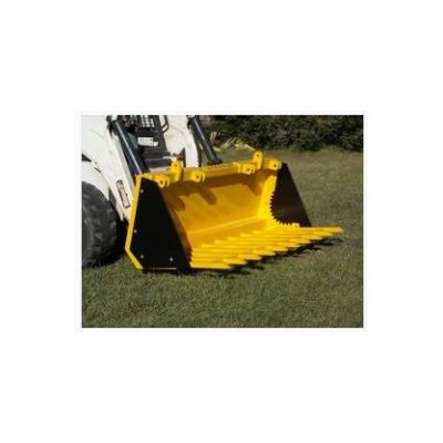 The NEW DIRT WORKS 72` Rock Bucket is a utility skid steer attachment. Ideal for all material handling, including logs, stumps and large rocks; while allowing dirt and small debris to fall through the tines. This is a very efficient and economical way to remove rocks from fields prior to new plantings and clear brush and debris out of old and newly cleared wooded areas.