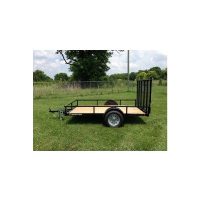 New Hustler 6′ x 10′ Utility trailer with ramp gate. 1 – 3500 lb. EZ lube axle with 15 inch new tires and wheels. Rubber mounted marker & tail lights. Treated wood floor. Swivel mount jack.