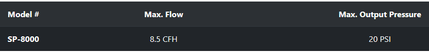 - 20 PSI maximum output pressure