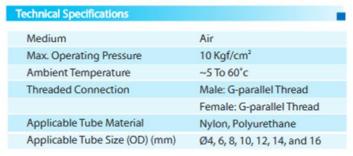 Features: Quick installation, simple and flexible, space saving The tube fitting comes in a wide variety of models to meet all your needs in pneumatic piping-Even after installation, the direction of tubing can be changed freely. The release ring adopts the ellipse design to make it more convenient and labor-saving for disconnection. The tapper pipe threads are pre-coated with Teflon with fine seal performance. It is easy for them to be mounted in the narrow places.