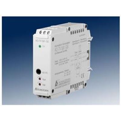 The alternating voltage isolation amplifier AD-TV 591 GS detects the true RMS value of an alternating voltage. The input variable 0-250V AC or 0-450V AC is here freely selectable via terminal. The alternating voltage is galvanic separated and transformed into an impressed DC standard signal 0/4-20 mA or 0/2-10 VDC. The zero point and the range of the measuring signal can be adjusted with trimmers at the front. The trimmers can be activated via a wire bridge. The start of the output range can be modified via a wire bridge from 0 to 4mA or from 0 to 2V, exceeding the measuring range or falling below the measuring range is indicated with a flashing LED at the front of the device. The device can be configured with a PC software via the interface on the front interface.